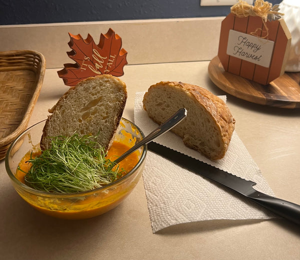 One of our favorite ways to use microgreens in the fall is to add them to soups. This is one of Zac's favorites called Carrot Soup with microgreen carrots on top to provide a boost of nutrition.